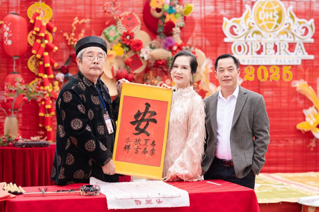 Một trong những điểm nhấn của không khí Tết tại Đại Hoàng Sơn Opera chính là những câu đối đỏ, những bức thư pháp được trao tay. Những món quà này không chỉ đơn giản là vật phẩm trang trí, mà còn chứa đựng lời chúc chân thành về tài lộc, bình an và hạnh phúc trong năm mới. Những câu đối ngắn gọn nhưng đậm đà ý nghĩa này là sự kết nối giữa các thế hệ, giữa truyền thống và hiện đại.