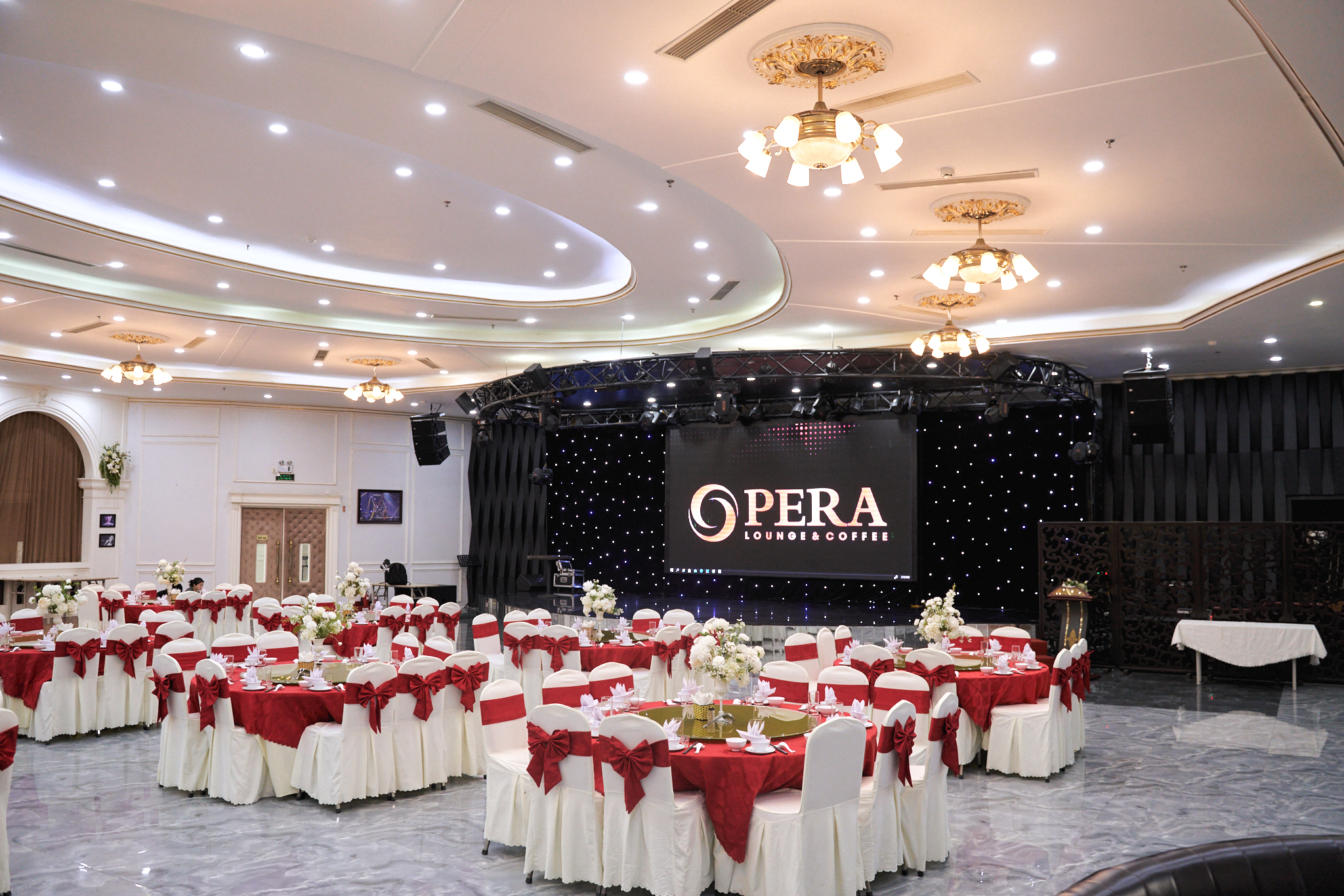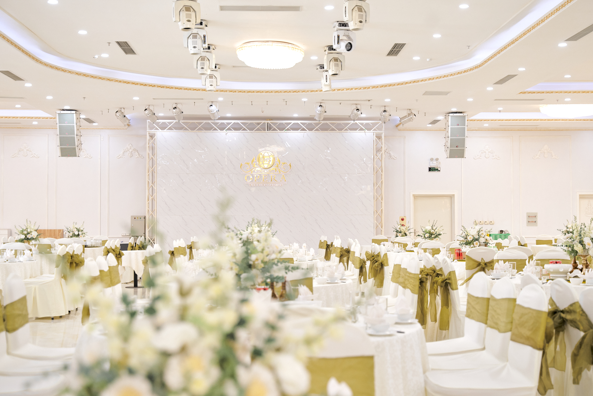 Với thiết kế nội thất tinh tế và không gian rộng rãi, Đại Hoàng Sơn Opera Wedding Palace đáp ứng được yêu cầu của các sự kiện quy mô lớn đến nhỏ. Từ những cuộc họp quan trọng, hội nghị cấp cao đến các chương trình văn hóa, dạ tiệc tối hay lễ hội, nơi đây luôn là sự lựa chọn hoàn hảo cho các sự kiện đẳng cấp.